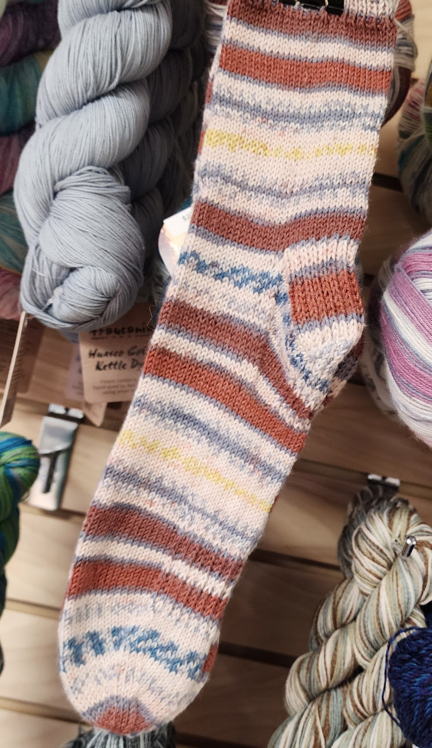If you are able, it would be helpful if you could knit a gauge swatch before the class starts. You just need the yarn you selected and the size needles you intend to use. Use any needle that’s the size you intend to use for the sock.